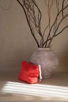 Introducing the must-have accessory for summer. The beach clutch is crafted from the Seaside Terry Jacquard fabric in Lobster Red and features a vegan leather pull tab with zipper to close. This is the perfect companion for your beachside vacays.