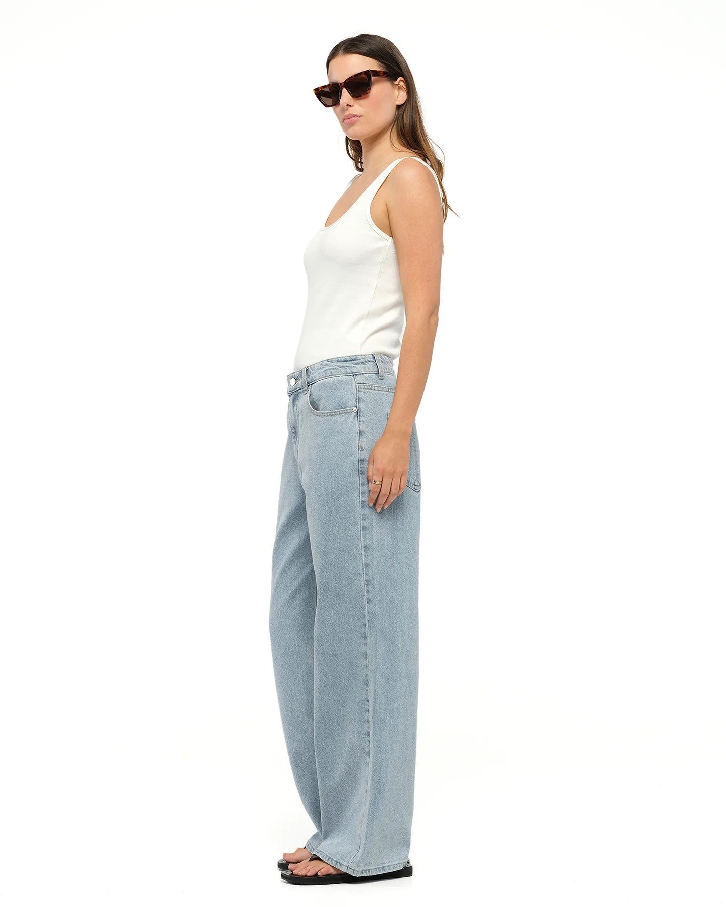 Lounge Crisp Cotton Stretch Slim Leg Pant Lefkada Sea/White