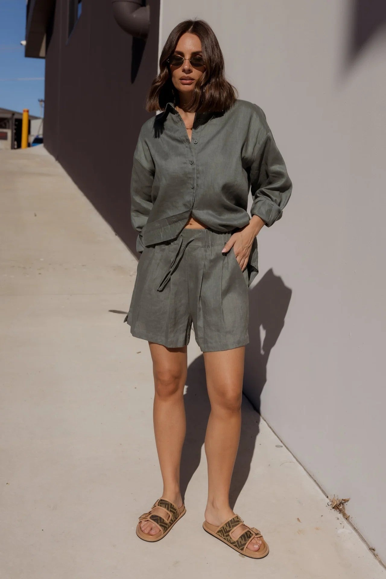 Lounge Crisp Cotton Stretch Wide Leg Cropped Pant Montenegro Moss/White