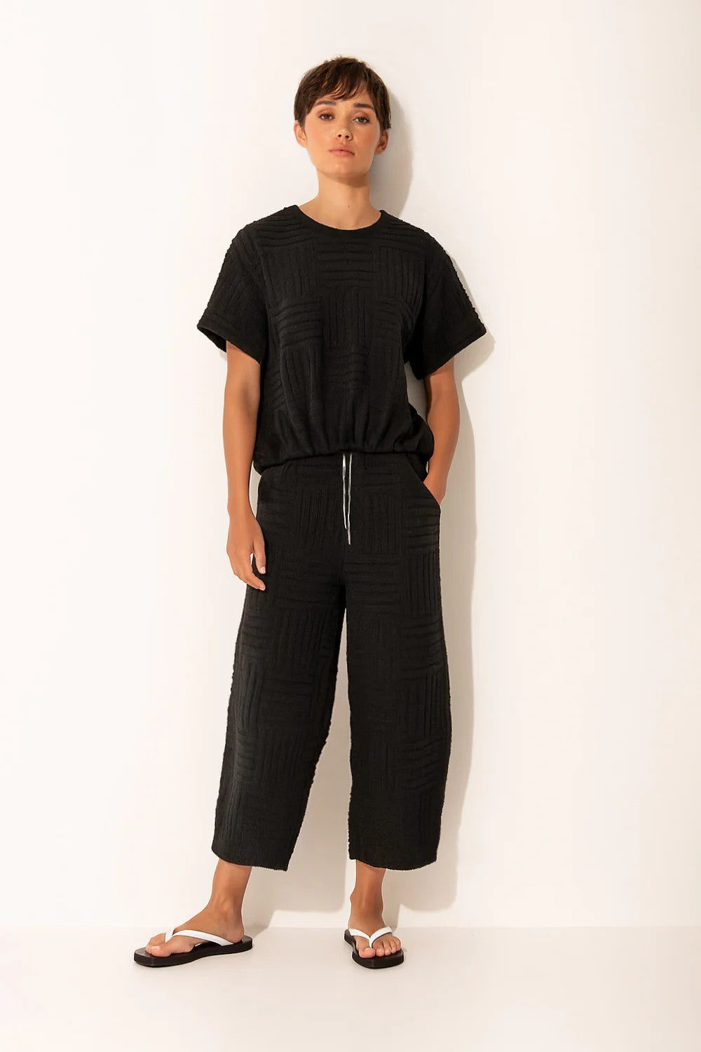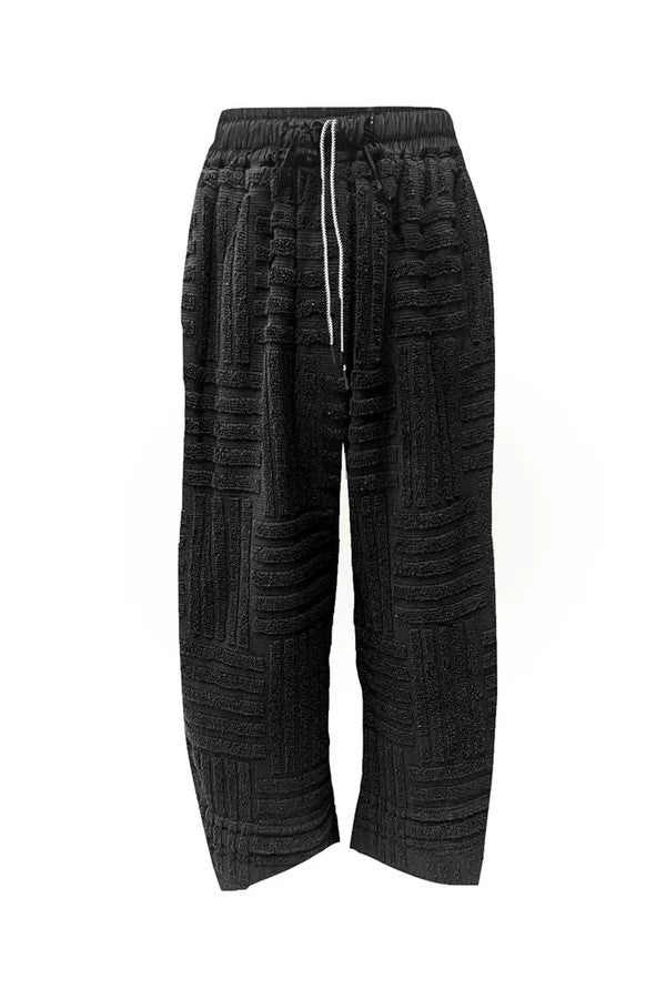Lounge Cotton Blend Towelling Barrel Leg Drawstring Waist Pant Ardeche Black