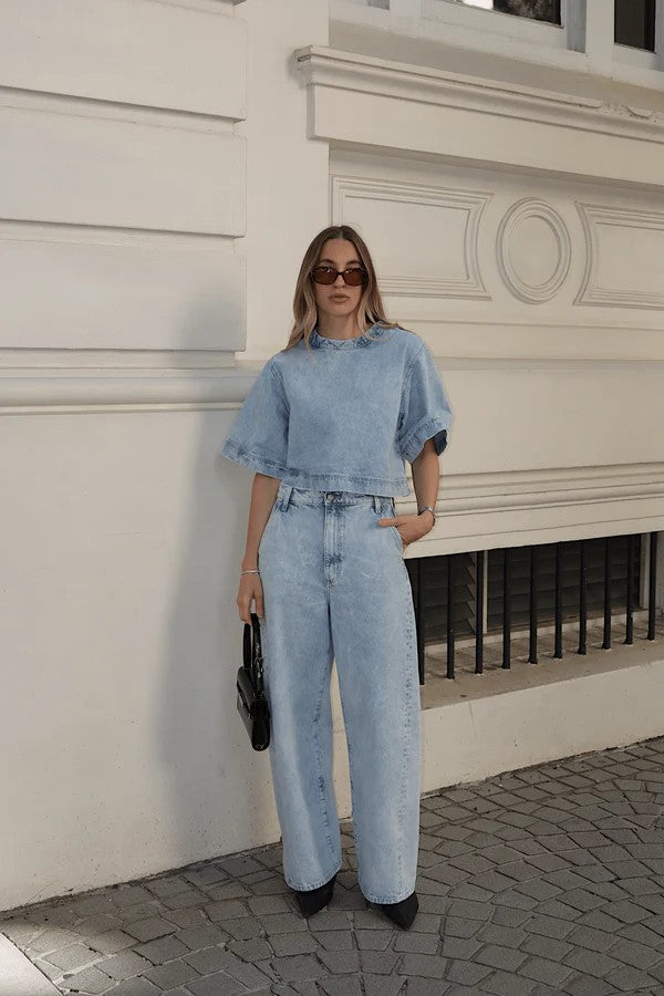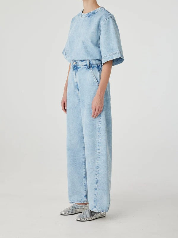 The stand out barrel leg jean. The luna jean sits high on the true waist, is relaxed through the hip and leg, with a barrel leg profile that finishes at the top of the shoe. Featuring side pockets and side panel details, Crafted from premium rigid denim.