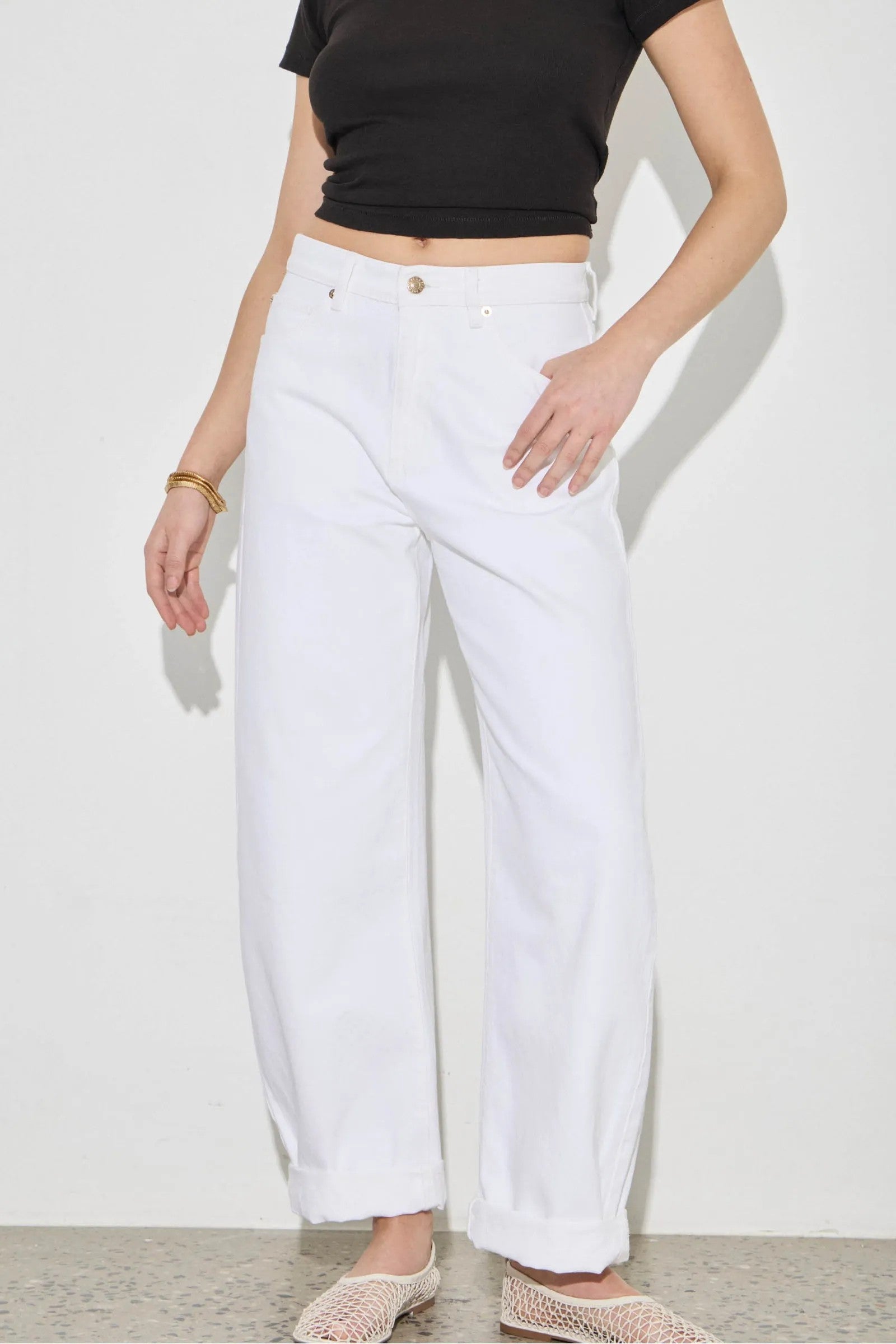 - Has a longer leg than our Gigi Barrel, finishing just below the ankle which can be rolled up for a more cropped look