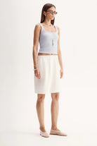 Made of a ribbed stretch cotton fabric, the Persi Tank is part of our range of core essentials. Cut to a fitted silhouette, this top has thin shoulder straps and a low scoop neckline. Style with structured denim, tailored pants, and casual pants.