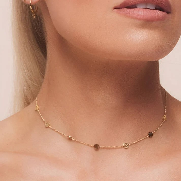 With its barely-there chain, the repeated EVER icon motifs add extra detail to the classic choker gold chain.