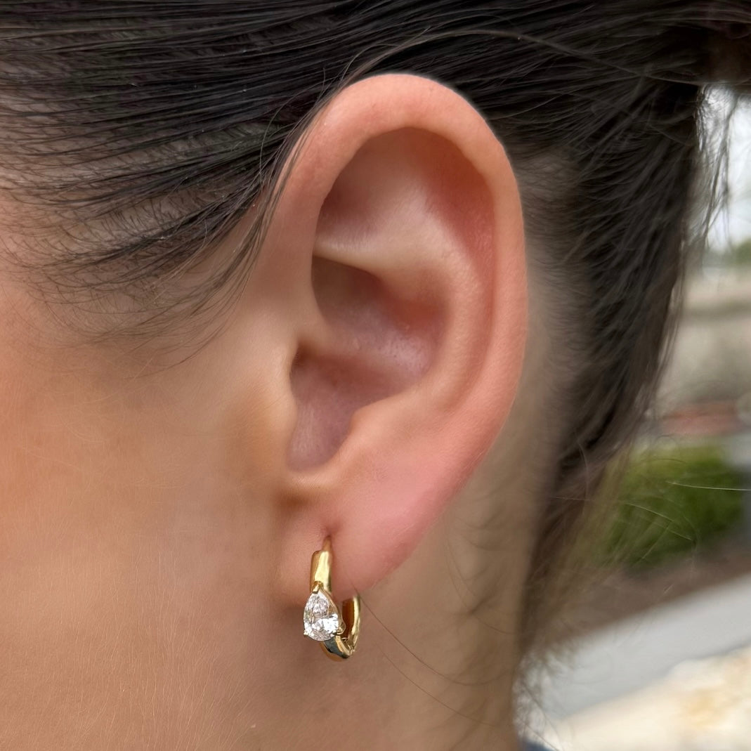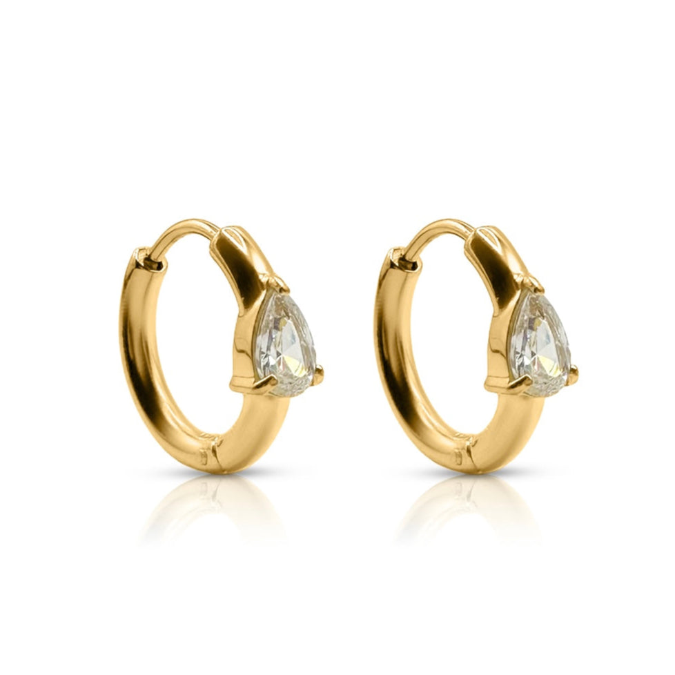 The Rush Hour Huggie Earrings bring together a smooth gold finish and a bold, triangular-cut stone for a look that’s both refined and ready to move.