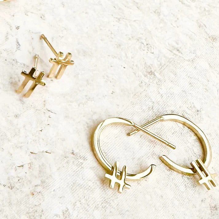 Taking inspiration from the markings on a basketball court, our mini Swish Gold Studs are durable, minimal and versatile.