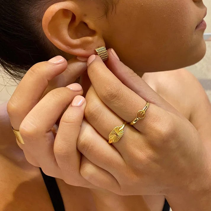 Bold detail, everyday ease. The Crossroad Ring is all about effortless shine on the move.