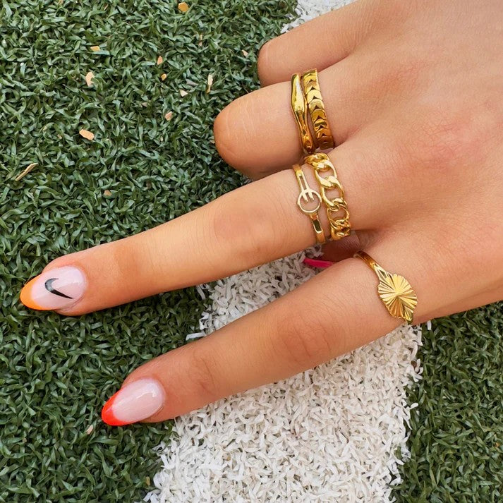 With its striking sunburst texture and polished 9mm band, this ring adds energy to your stack without slowing you down. It’s built for movement, comfort, and bold styling, designed to take you from early runs to evening plans without missing a beat.