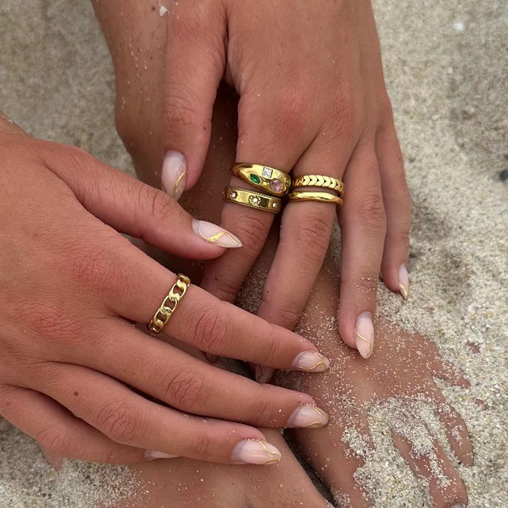 Featuring six divine cubic zirconia stones settled in a dome gold design, it creates a unique and refined look that will certainly turn heads.
