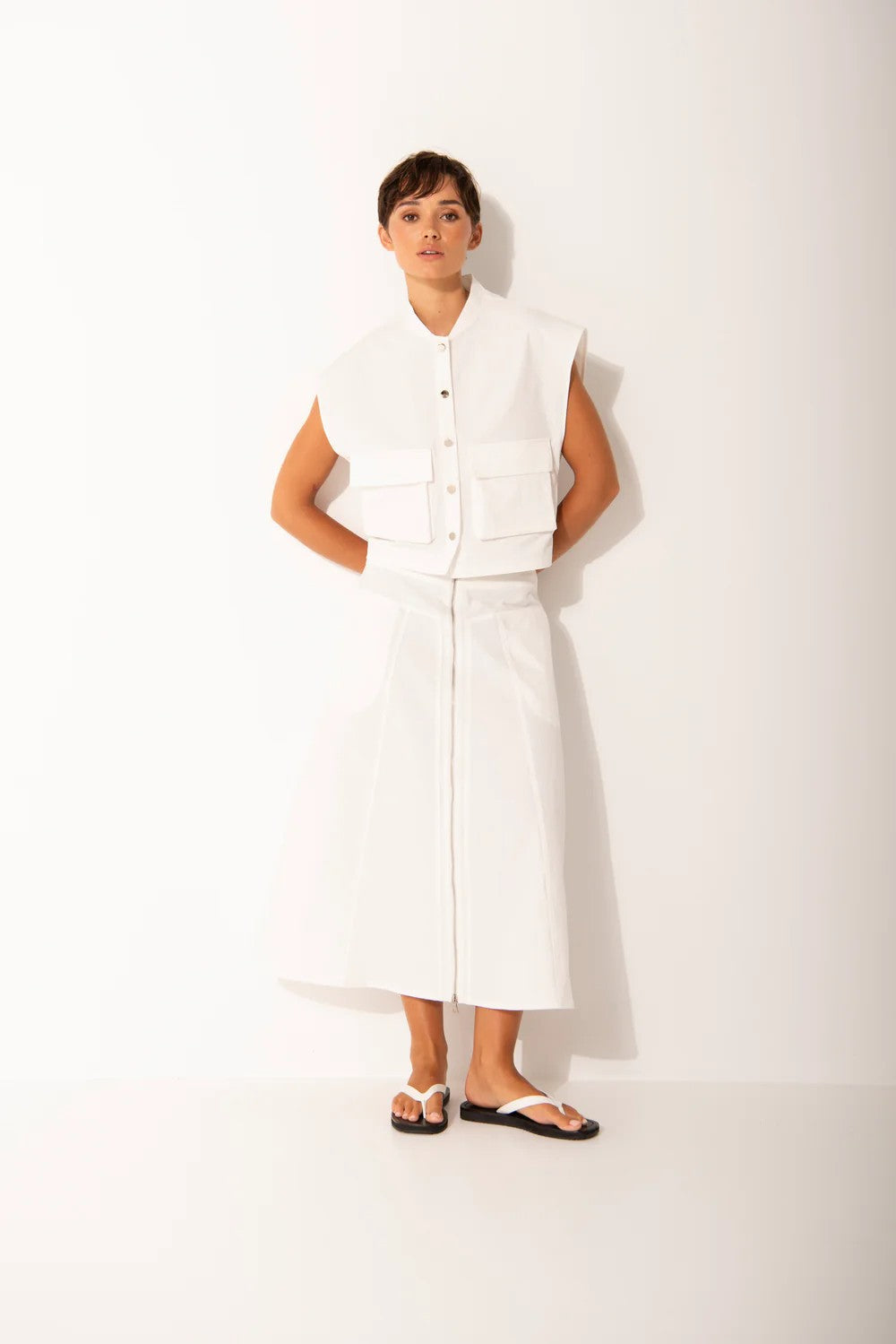 Lounge Stretch Twill Cargo Pocket Vest Corfu White