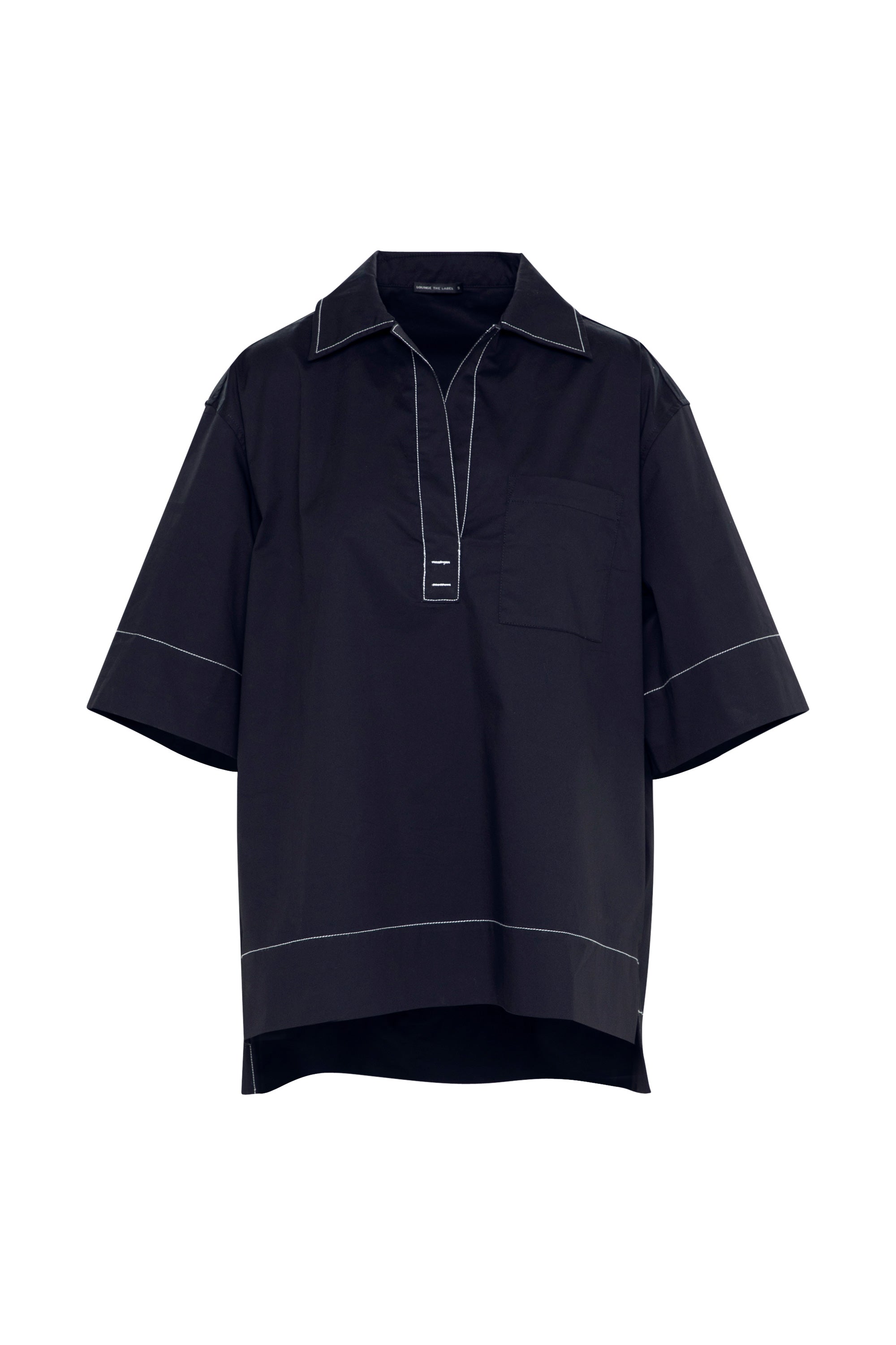 Lounge Crisp Cotton Stretch Short Sleeve Tunic Shirt Paros Sea/White