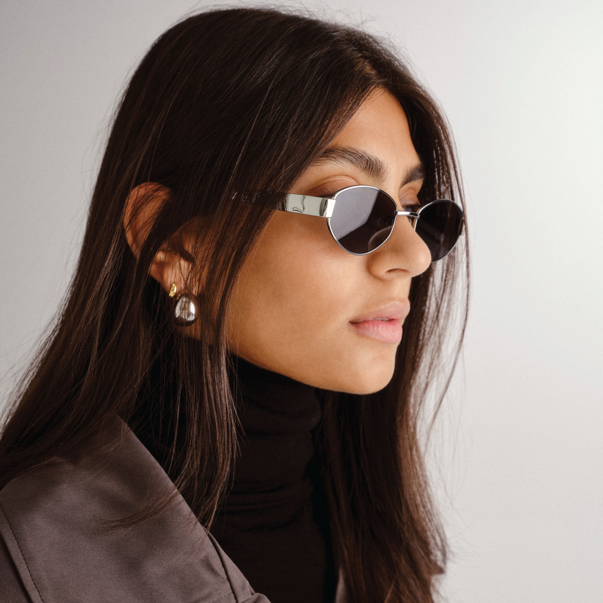 The Boston is an ode to the 90’s, which evokes a vintage aesthetic. This oval frame features a statement silver metal arm, with a signature brand stamp detail. This premium wire frame comes with a smoke mono polarised lens adding to its high end quality.