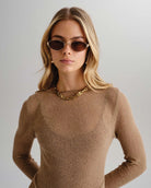 The Boston is an ode to the 90’s, which evokes a vintage aesthetic. This oval silhouette showcases a striking metal arm adorned with signature branding, exuding timeless sophistication. Its premium wire construction embodies elevated craftsmanship and attention to detail.