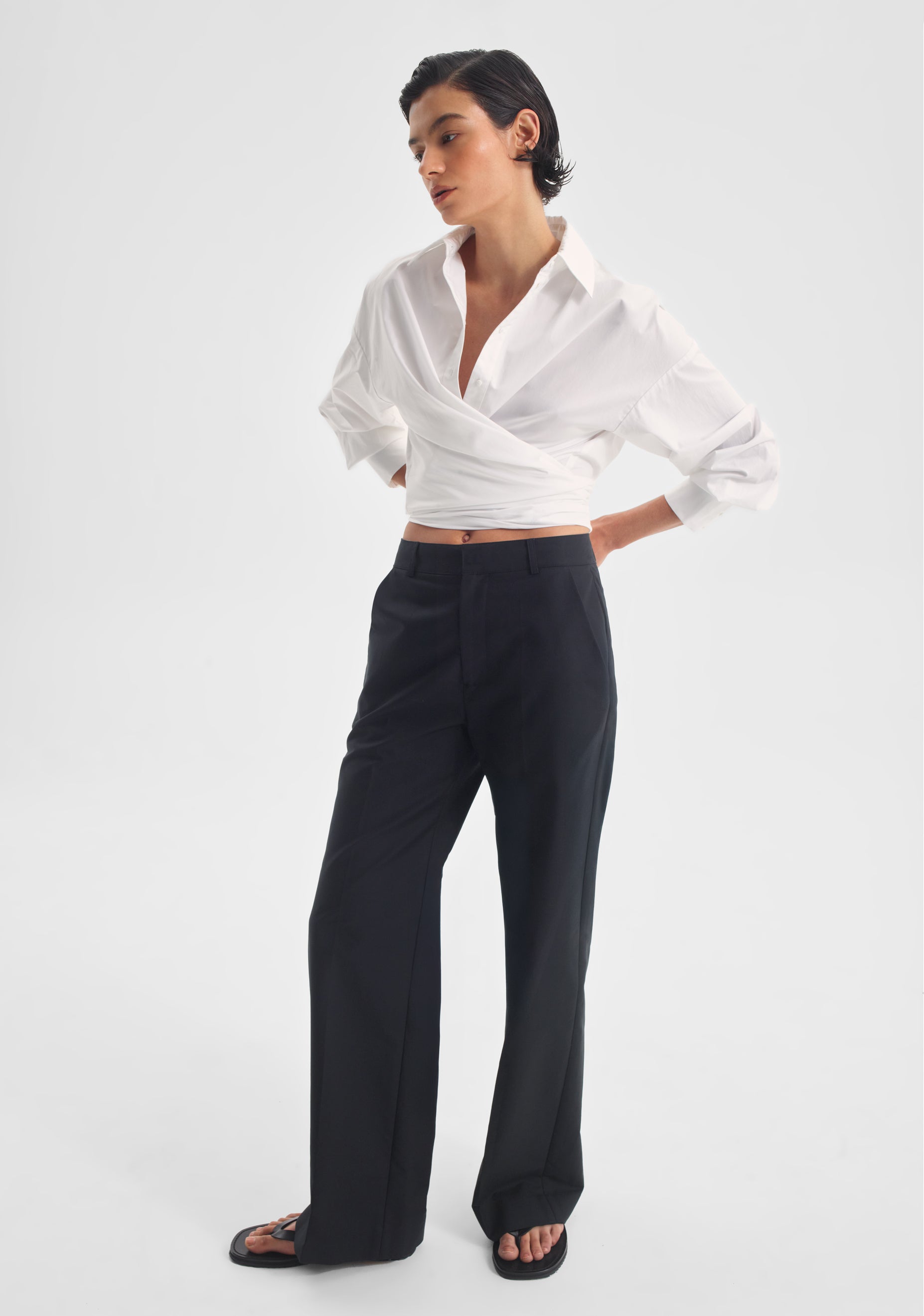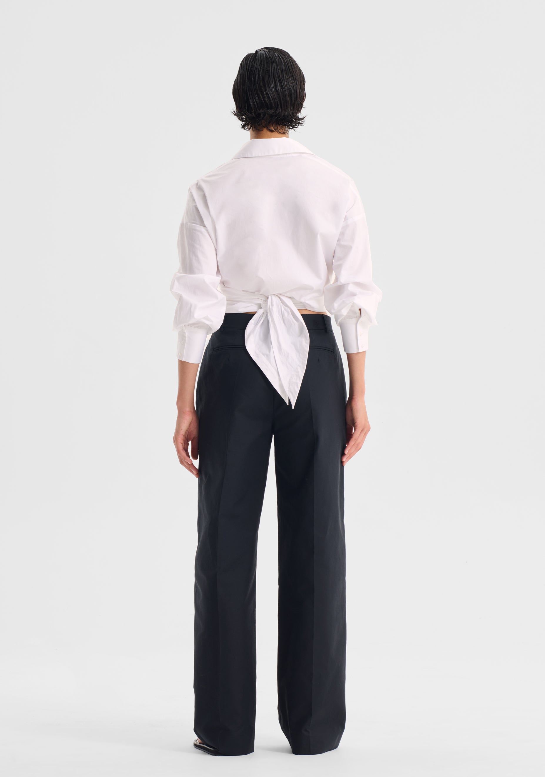 • Functional wrap waist, ties to back or side