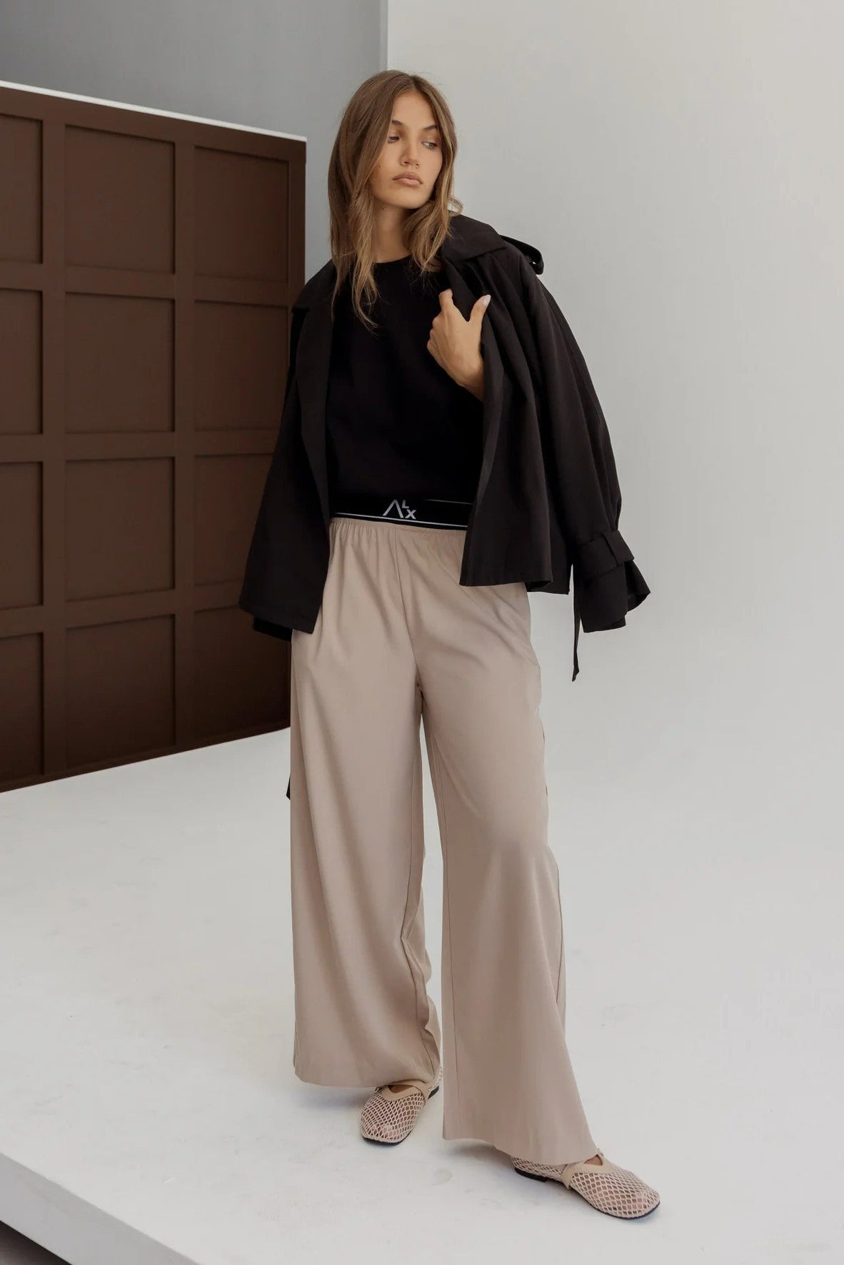 Designed with a relaxed fit and wide leg silhouette for comfortable, easy wear. The ALX branded elastic waistband offers all-day comfort, with additional hidden elastic for subtle tummy support. Crafted from a durable stretch fabric that moves with you while holding its shape.