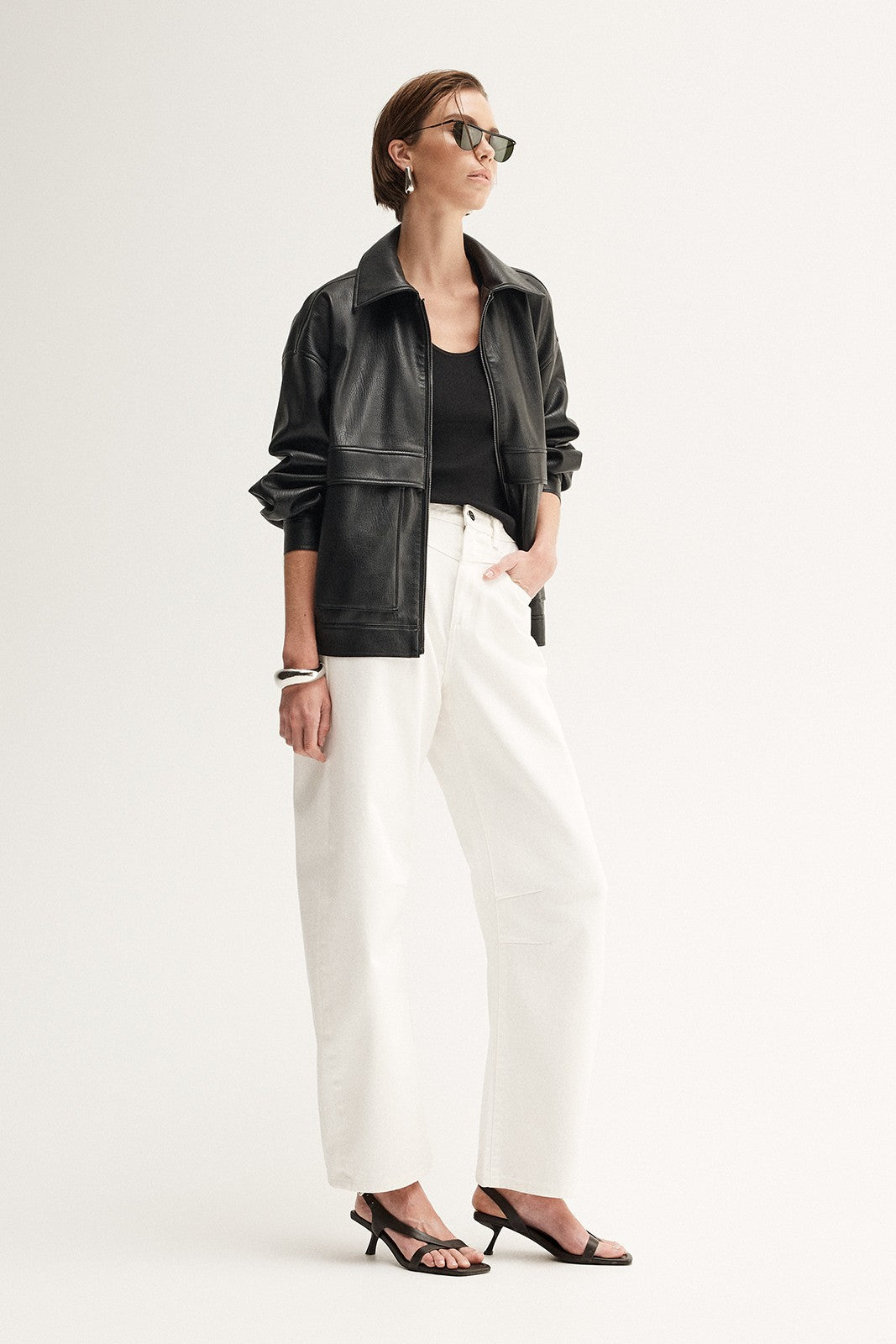 Made of the best-selling vegan leather, the Suki Jacket captures the essence of bold minimalism. With refined detailing and a relaxed fit, this jacket is made to transition seamlessly from day-to-night styling. Achieve a polished look by pairing with your go-to denim jeans.