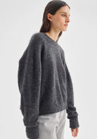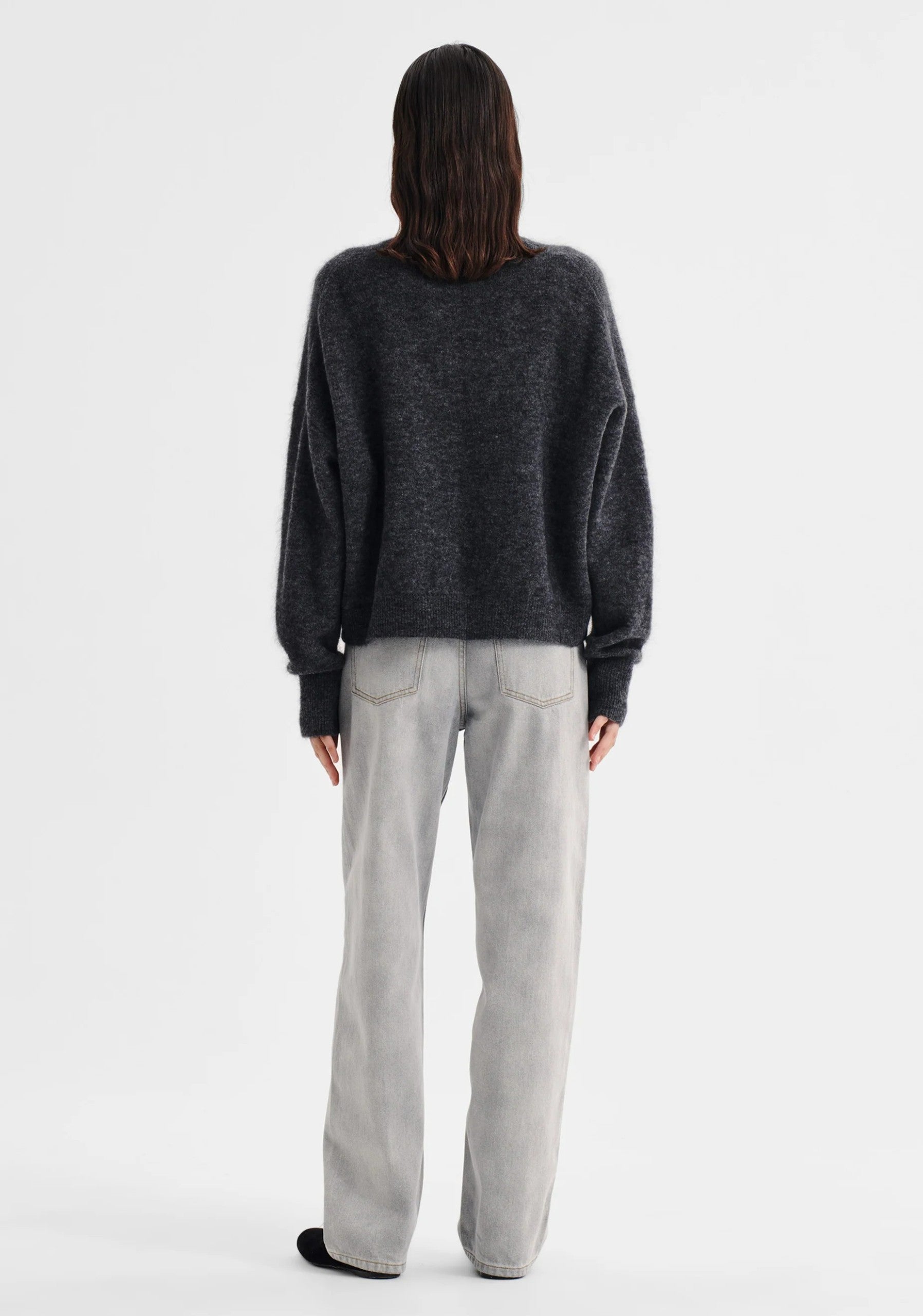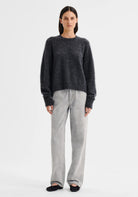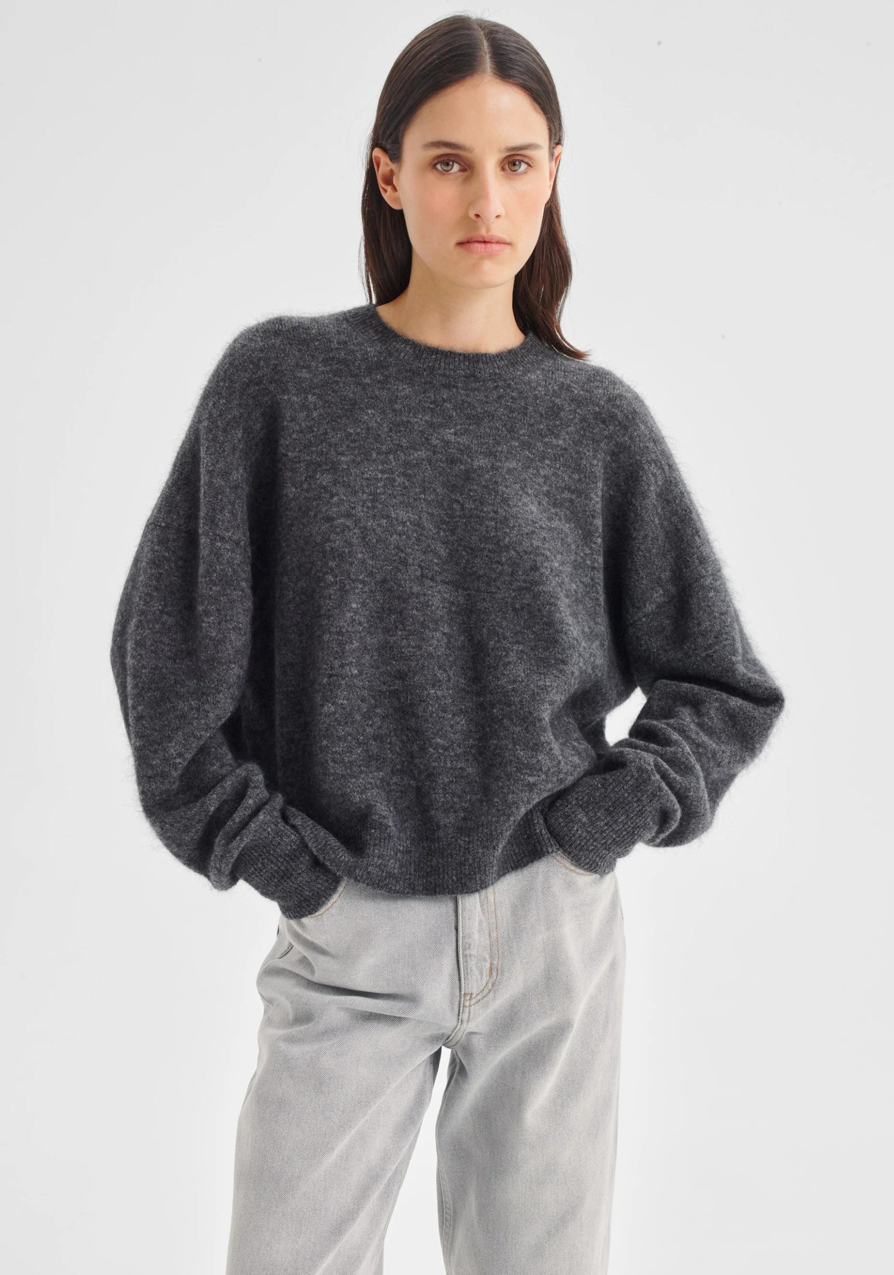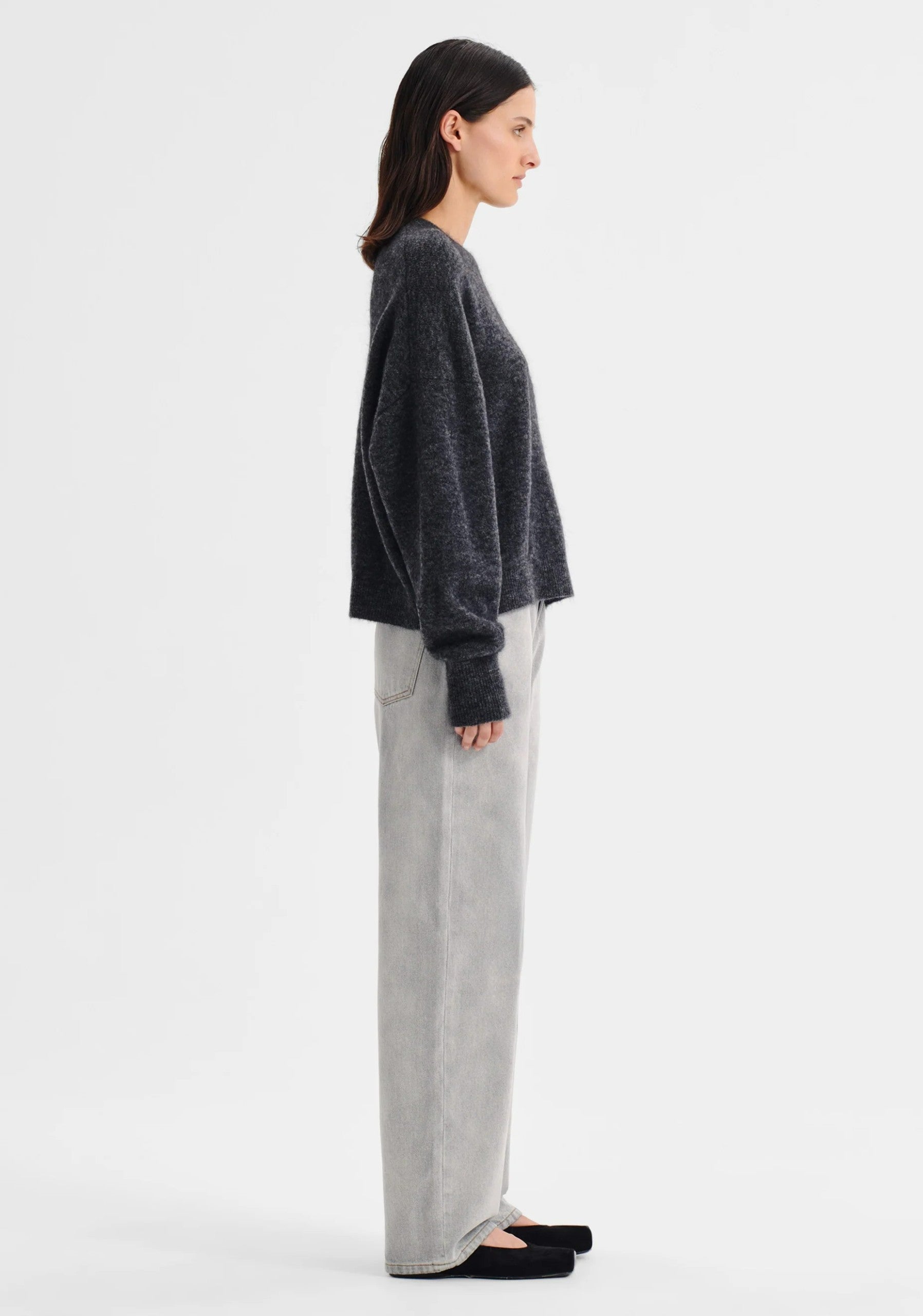 A soft mohair wool-blend knit with a fluffy texture and relaxed fit. Designed with a classic crew neck, full-length sleeves, and finished with ribbed trims at the neckline, cuffs, and hem for a cosy, effortless feel.