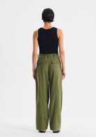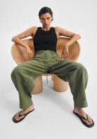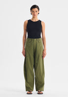 This Pant is crafted from mid-weight washed cotton with a relaxed, ankle-length barrel leg.