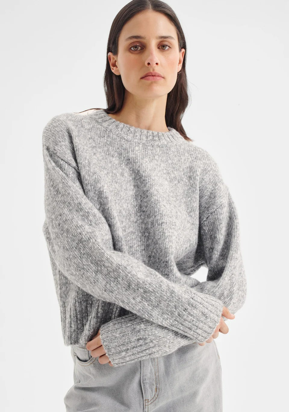 The Zoe Knit Pullover by Morrison in Grey Marle is one of those effortless knits you’ll reach for on repeat. It’s simple, clean and easy to style — the perfect everyday layer.
