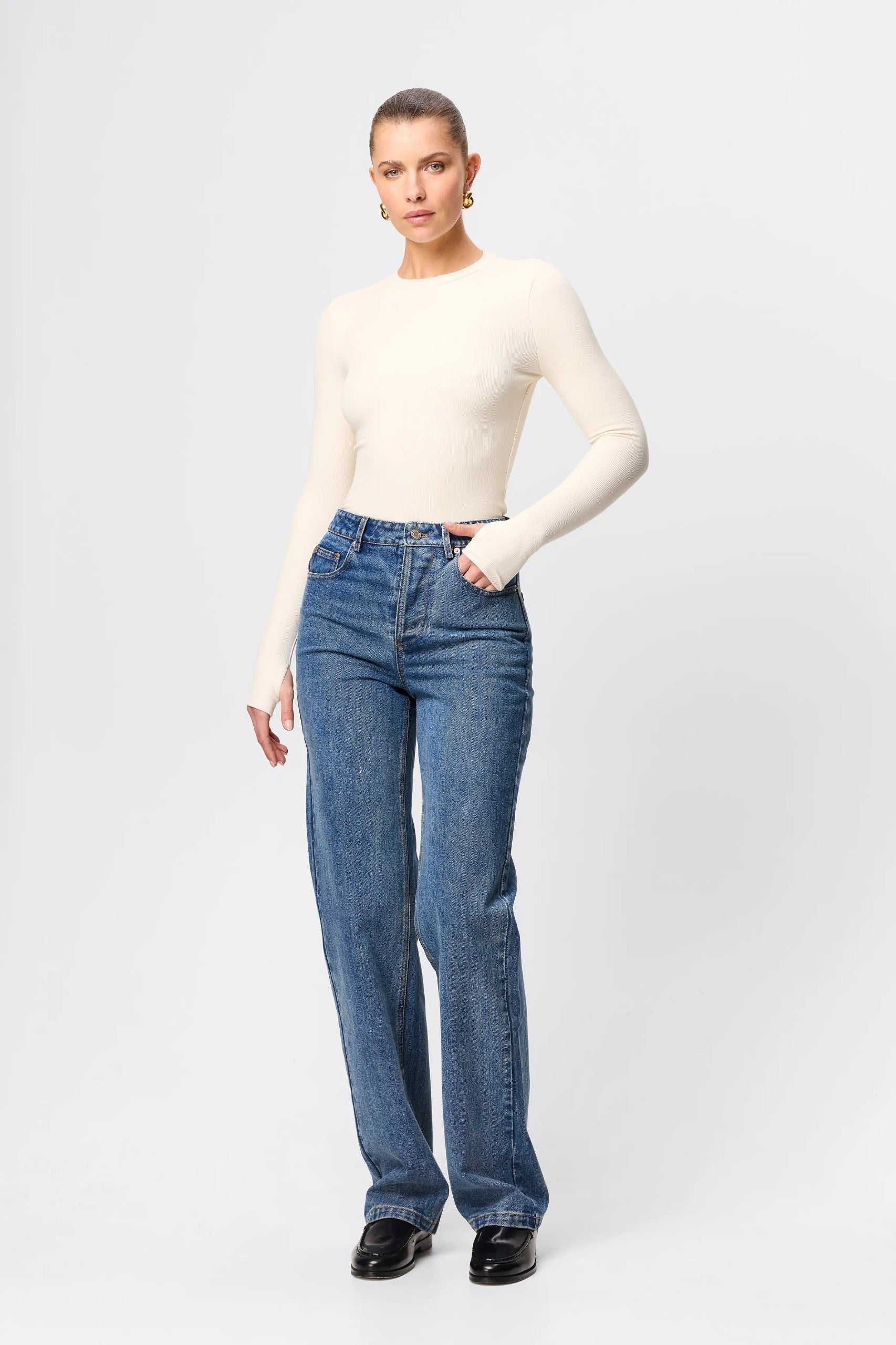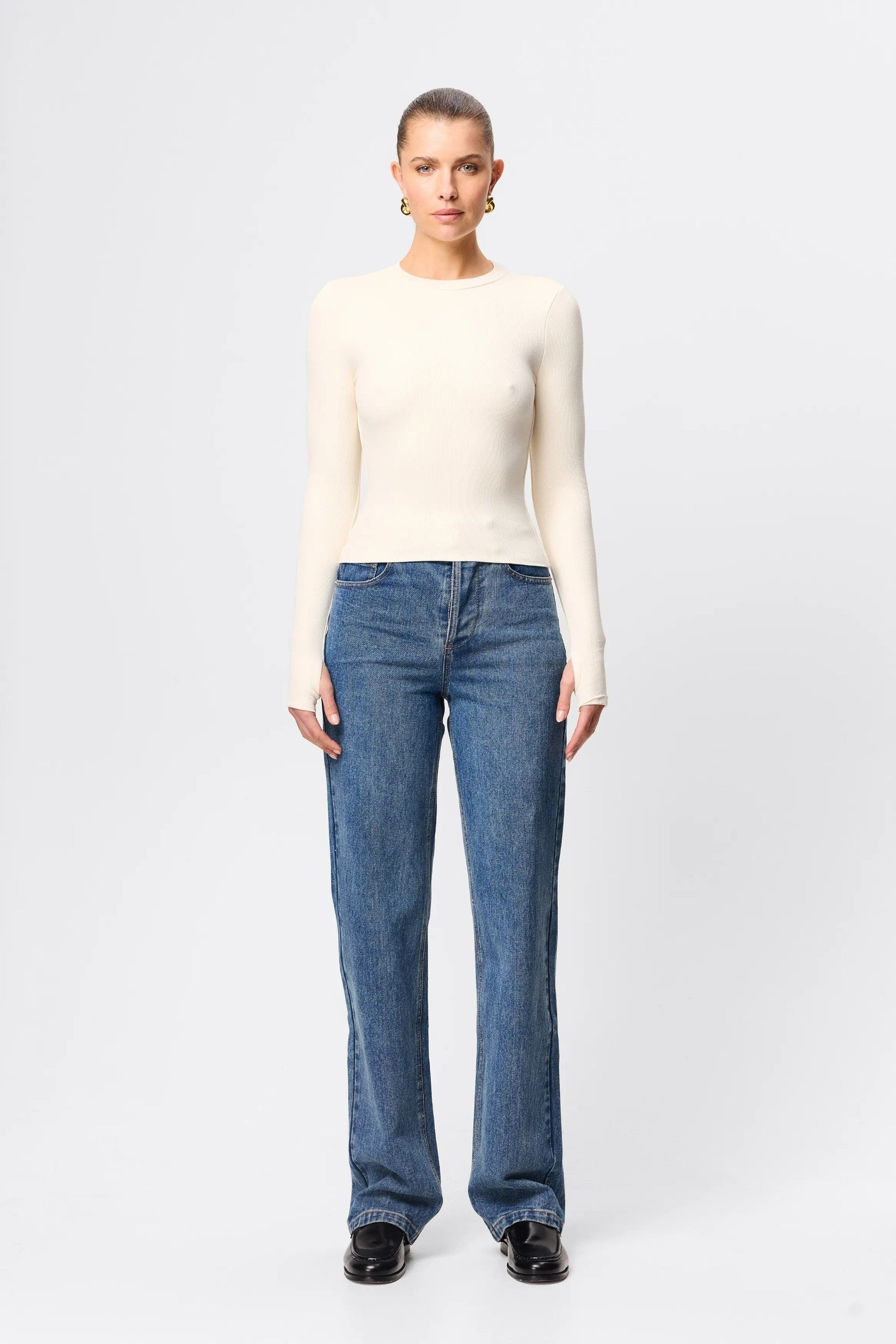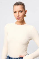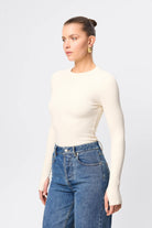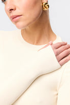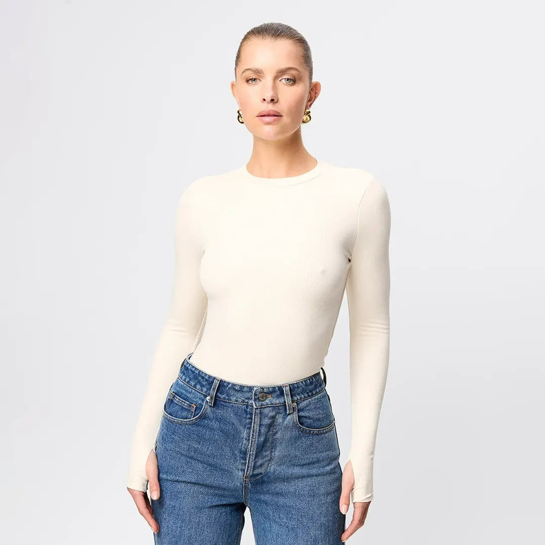 The Brooklyn Top in Natural is your new go to ribbed jersey piece. This extremely soft double layered, lightweight top features a high round neckline and long sleeves with thumb openings. The top is conveniently designed to be paired with existing pieces in your wardrobe.