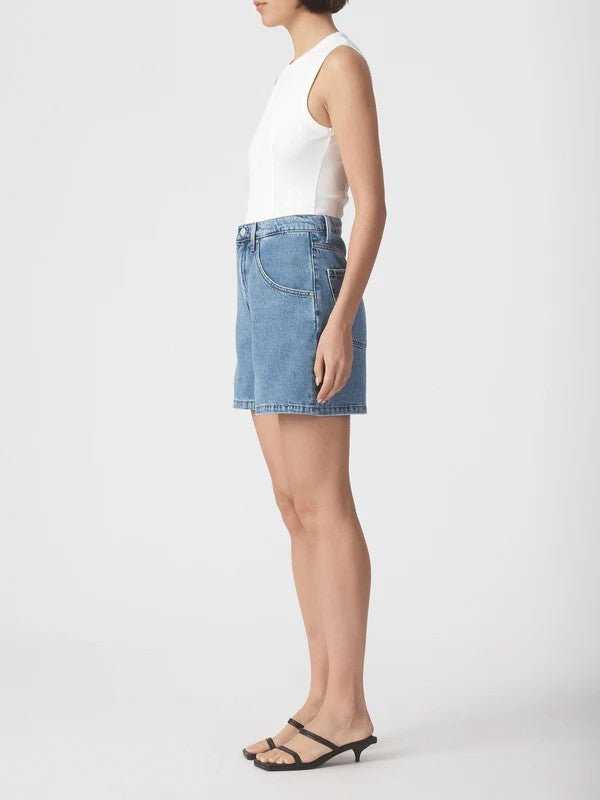 The Elevated oversized short. The Phoenix short sits just below the naval, its relaxed throughout and finishes at mid-thigh. Featuring oversized front and back pockets. Crafted from premium rigid denim.