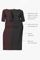 Introducing the refined Ivy Cape Sleeve Dress, now available in a trending elongated midi length and a timeless hue. This captivating design effortlessly blends style and comfort. Crafted from stretchy nylon fabric with ruching at the waist, it offers a flawless fit. The Ivy Dress showcases a striking balance between its flowing cape sleeves and a cinched waist, creating a unique and thoughtfully designed silhouette.
