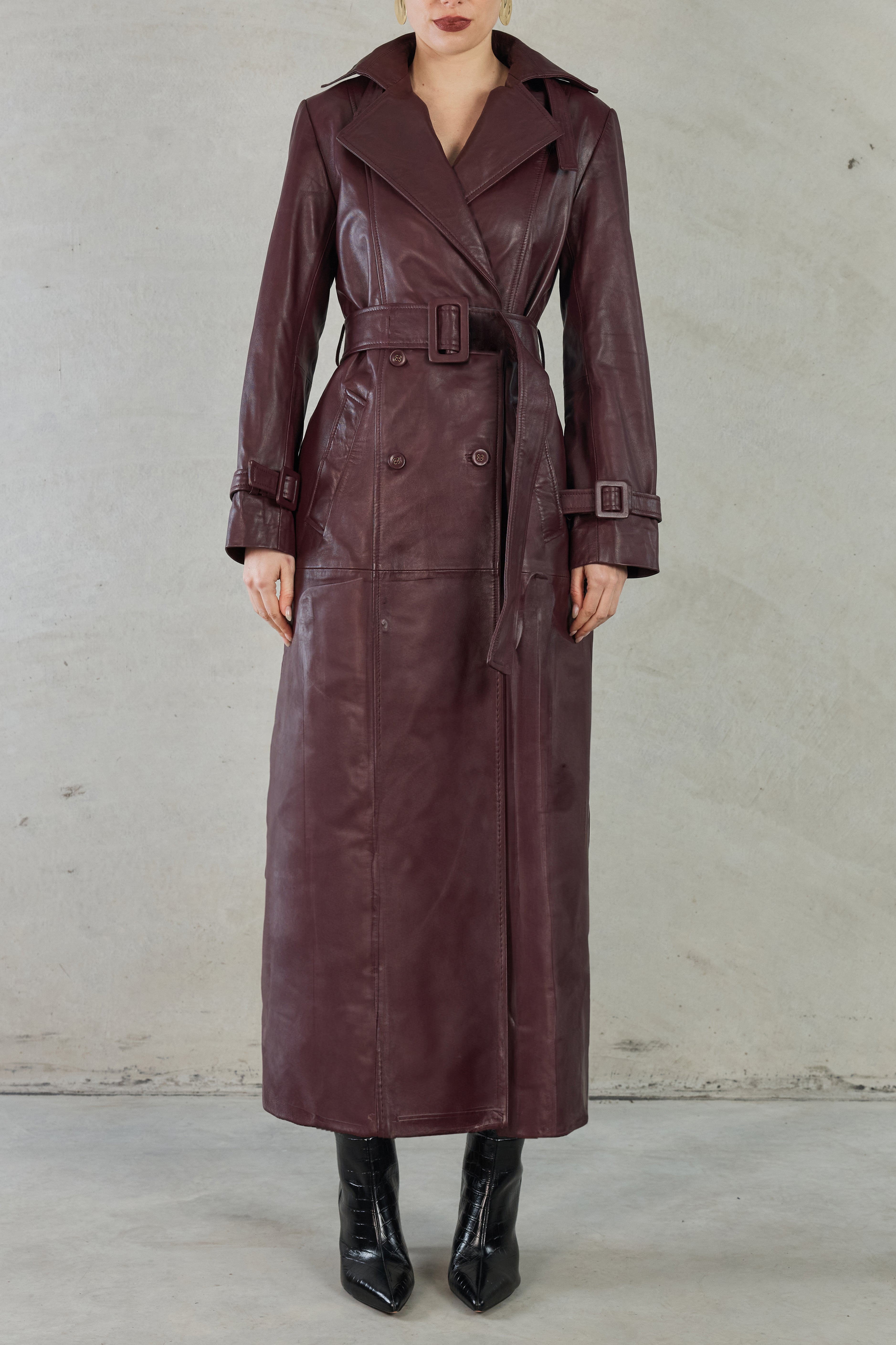 Sofia Irina Julia Long Line Leather Coat, Wine