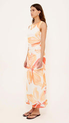 Staple The Label Solana Mesh Midi Dress, Orange and White Floral
