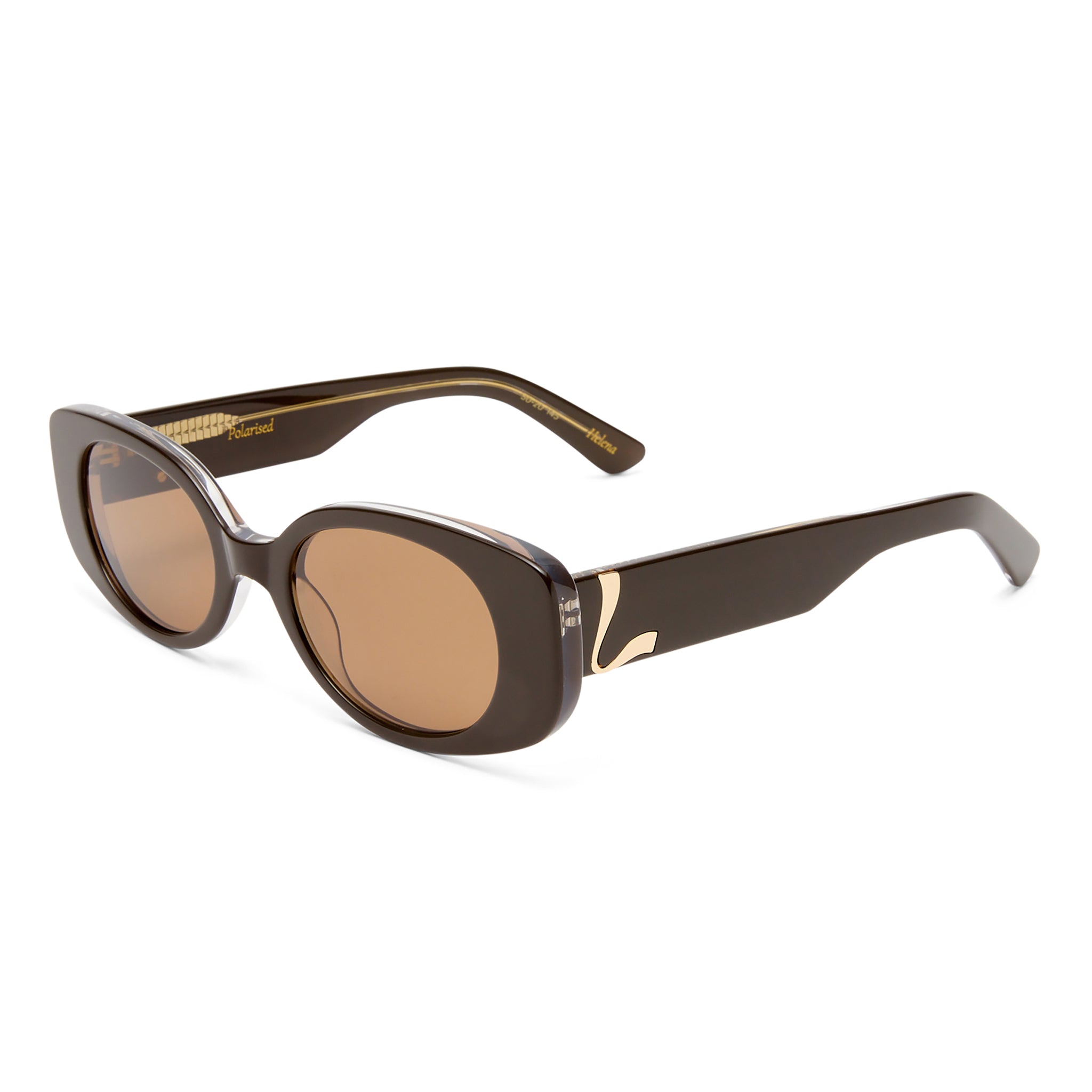 The Helena is a modern take on a classic oval frame with squared edges, creating an elegant and universal shape. Both plant based and polarised this style features signature gold detailed hardware on the temples.