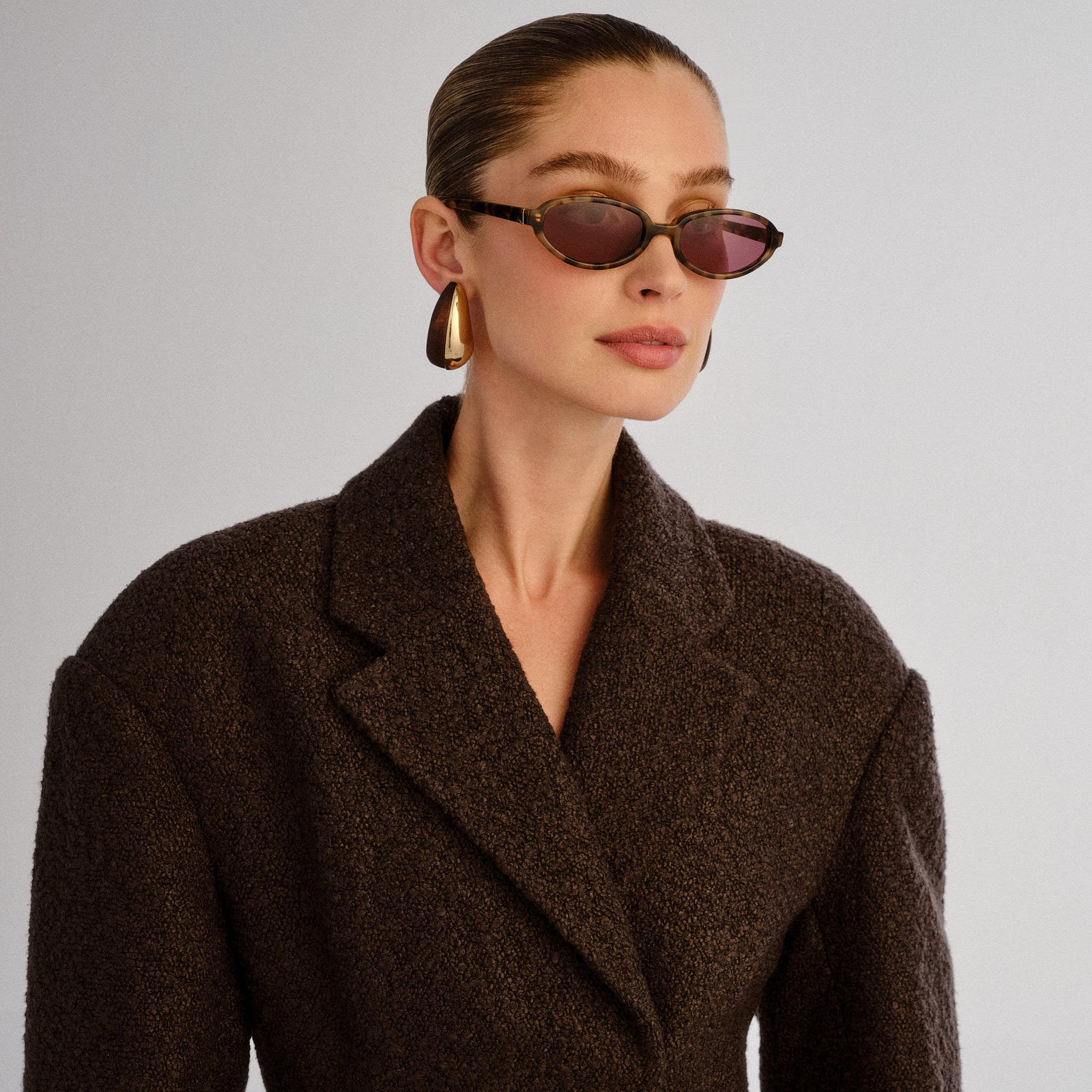 A perfect blend of vintage allure and modern luxury. The Olive features a small, round-oval frame with thin, delicately sculpted sides for an understated yet polished look. The organic L hardware on the temple adds a distinctive touch of sophistication, making this frame an exquisite statement of timeless refinement.