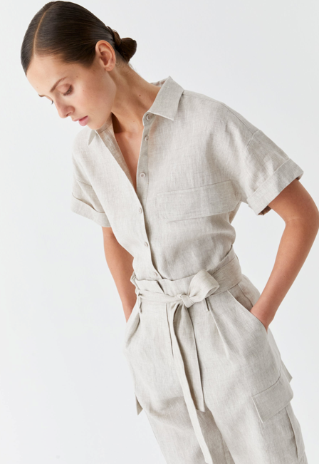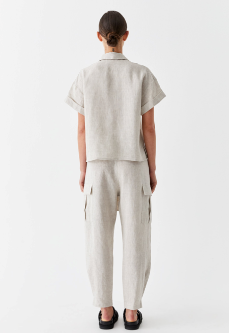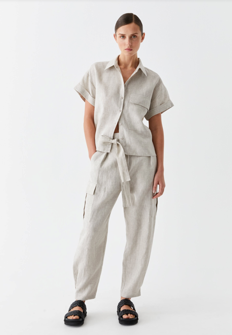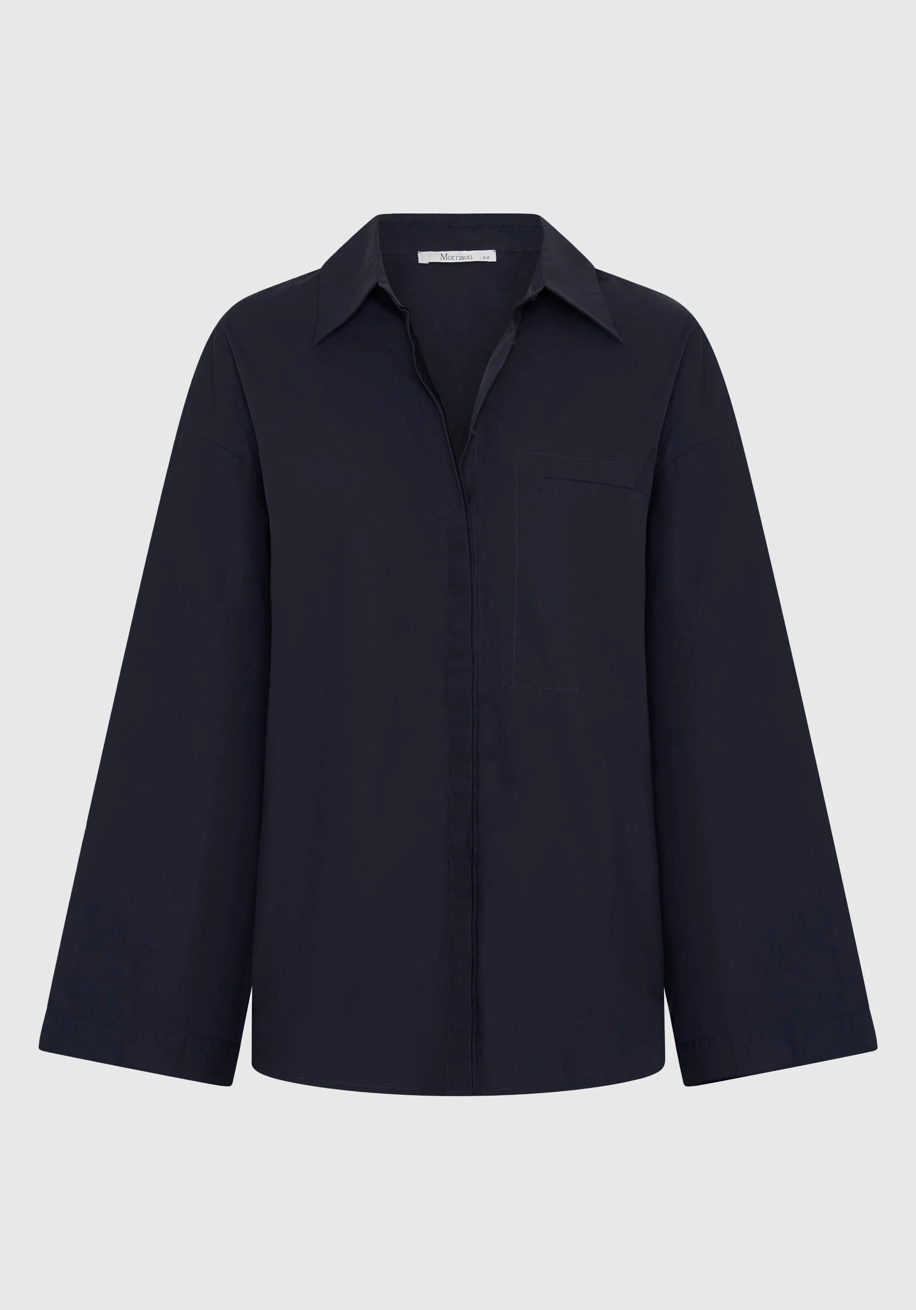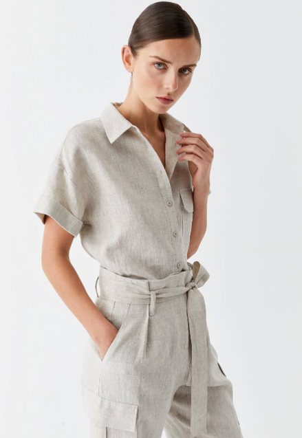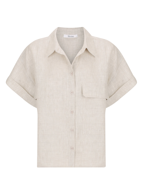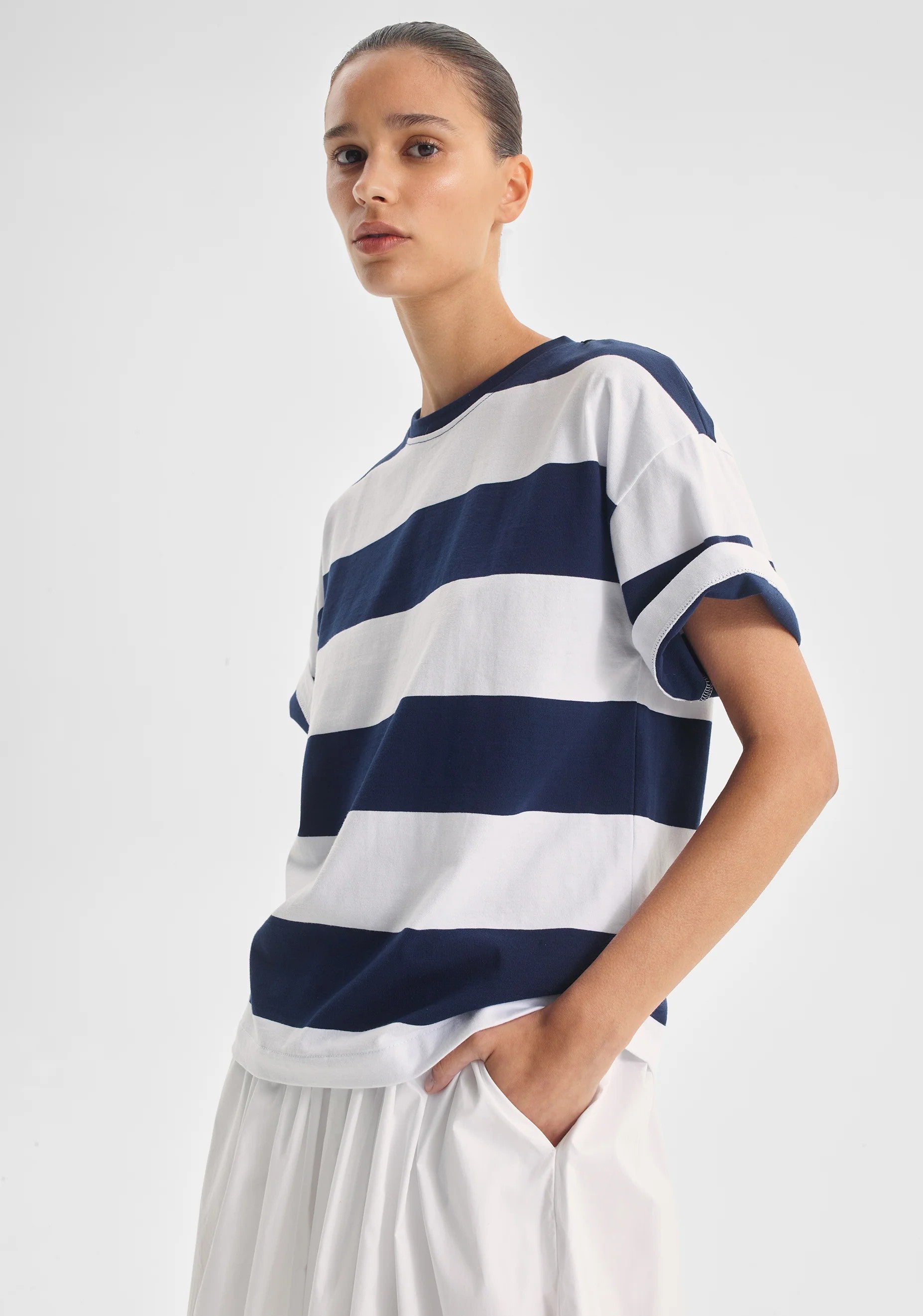 Lounge Crisp Cotton Stretch Short Sleeve Tunic Shirt Paros Sea/White
